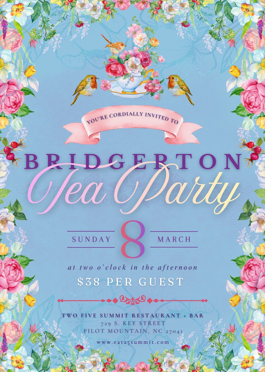 Step into elegance at our Bridgerton-Inspired Tea Party at 25 Summit Restaurant 💐✨